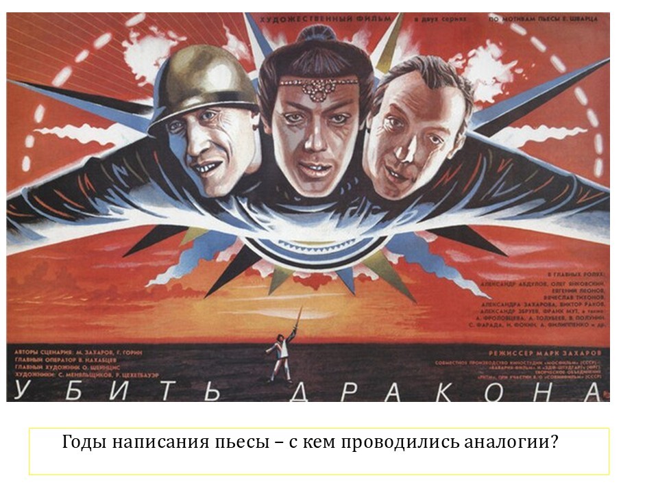 Один из самых умных, самых замечательных фильмов – «Убить дракона». Замечательный фильм, высказывания замечательные, мысли замечательные – о том, что надо думать своей головой, что не надо никого бояться и так далее, и так далее.