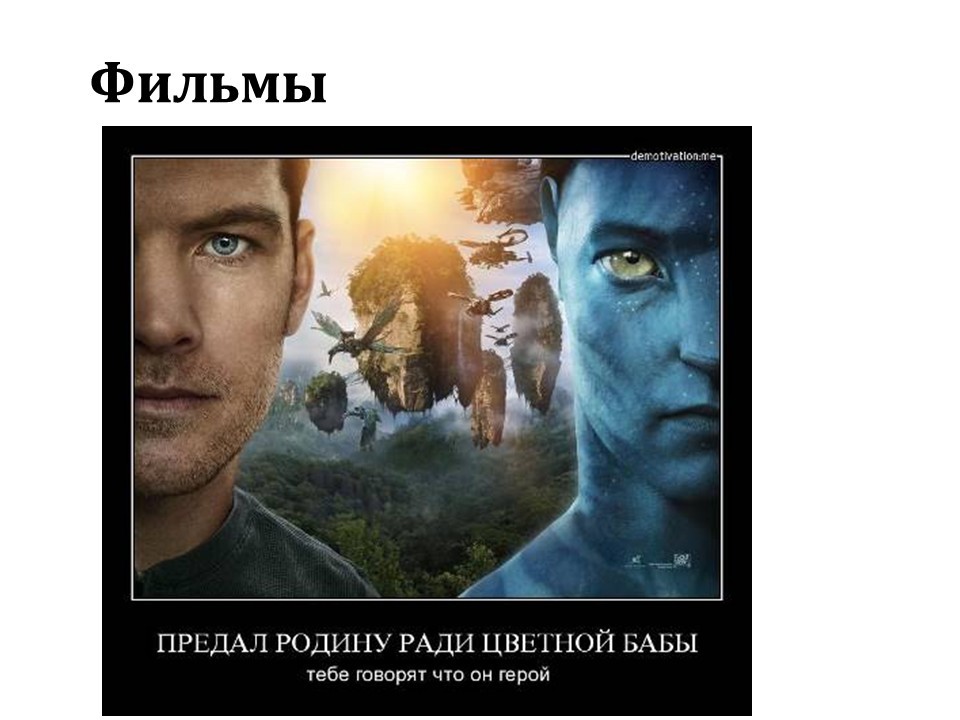Следующий фильм – «Аватар». Главный герой предаёт не просто свою страну – он предаёт целый вид разумных существ. Расу. Ради чего земляне прибыли на эту планету за много световых лет от земли? Делать им было больше нечего? Анаптаниум, видимо, был очень нужен. Где-то очень сильно нужен для планеты Земля. За что платили десятки миллионов долларов за килограмм анаптаниума? Видимо, он спасал жизни землян. О чём в фильме, конечно, не рассказывается.