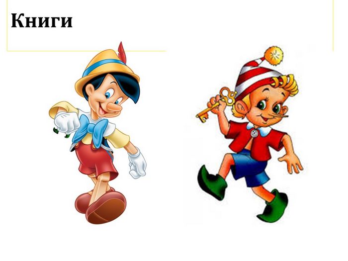 Слева я показал Пиноккио Коллоди, справа – нашего Буратино Алексея Толстого.