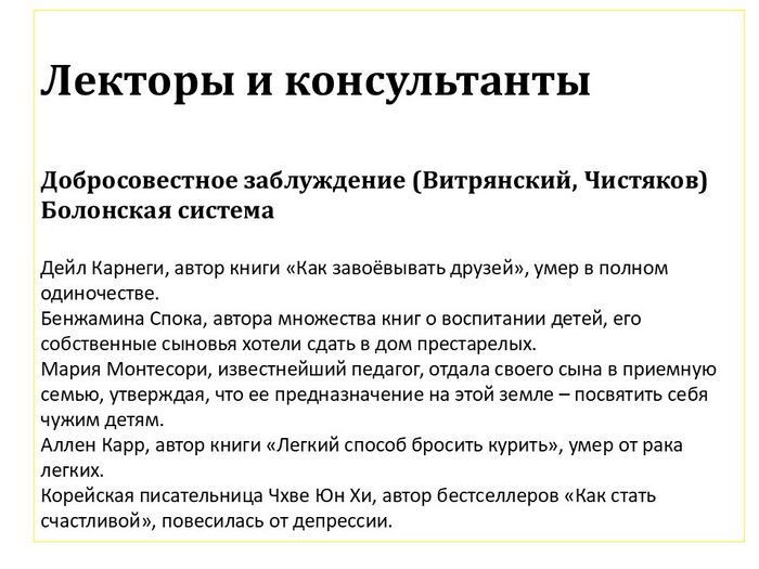Очень многие лекторы и консультанты либо могут иметь неверную точку зрения, либо могут добросовестно заблуждаться.