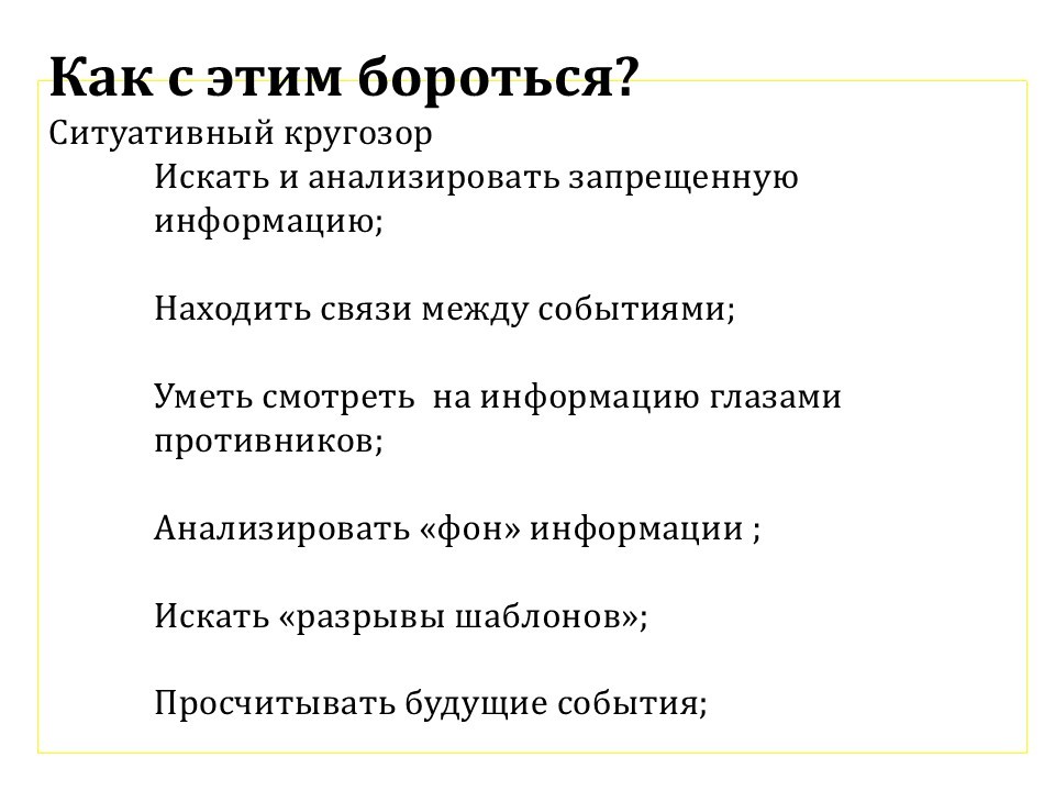 Надо смотреть на информацию глазами противников.