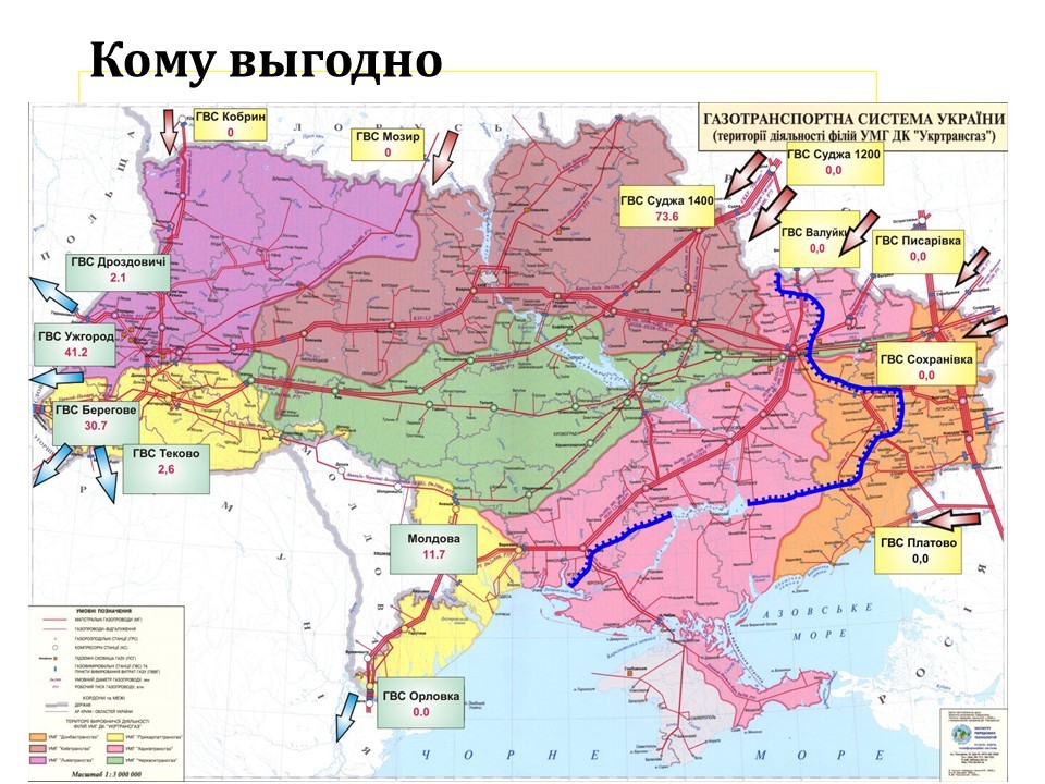 Потом «что-то» произошло, и наши войска героически отступили. Если вы посмотрите, в какие места героически отступили наши войска, то они отступили ровно так, чтобы оба входа газа на Украину не контролировать и чтобы южной части газопровода не угрожать. Мы можем не понимать, почему это происходит, но принимать в расчёт, что боевые действия ведутся там, где нет магистральных газопроводов, мы обязаны.