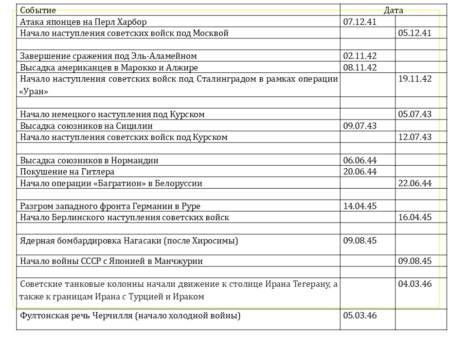 В 1946 году 4 марта товарищ Сталин не захотел выходить из Ирана и развернул танковые колонны к Тегерану, а также к границам Ирана, Турции и Ирака. Об этом говорят мало, но этот факт был. Можете его посмотреть в источниках. На следующий день прозвучала Фултонская речь Черчилля, началась холодная война.