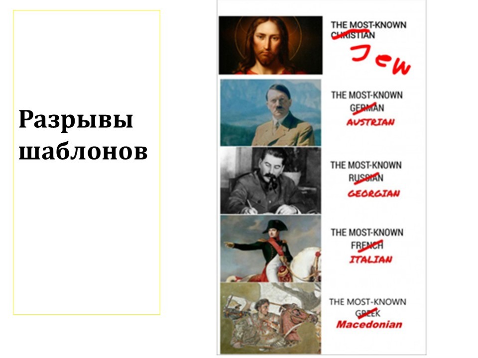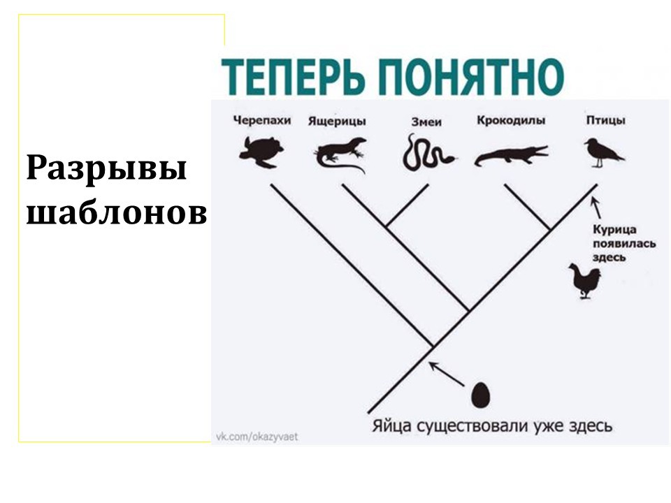 Я вам рассказывал про те шаблоны, которые есть у вас в голове, говорил, что их надо ломать. Про «дважды два четыре» все запомнили, про углы треугольника тоже запомнили. Соответственно, эти шаблоны всегда есть в голове неподготовленного человека.