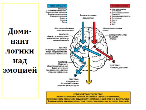 Но на самом деле, для того чтобы понять механизм доминирования логики над эмоциями, необходимо внимательно рассмотреть несложные примеры, доказывающих, что у каждого человека в голове есть минимум два центра принятия решений...