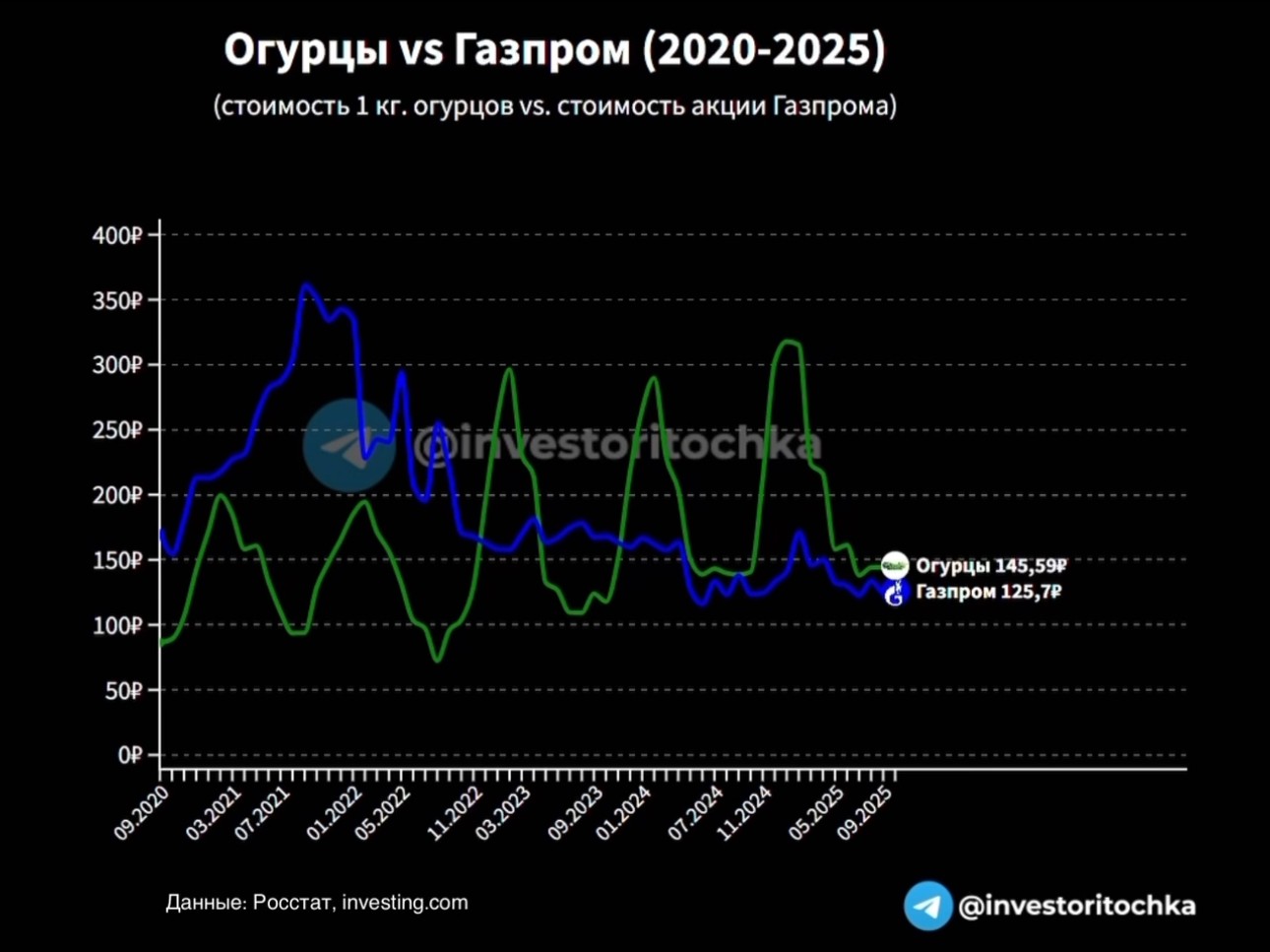 Но логически мыслящий человек посмотрит график колебания цен на акцию «Газпрома» и килограмм огурцов и примет совершенно иное решение, которое принесёт ему более существенный доход.