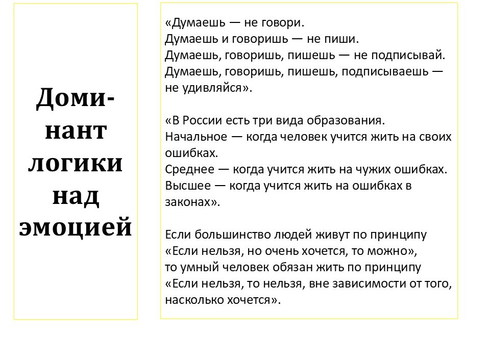 Видите, насколько разные выводы возникают из логики и эмоций?