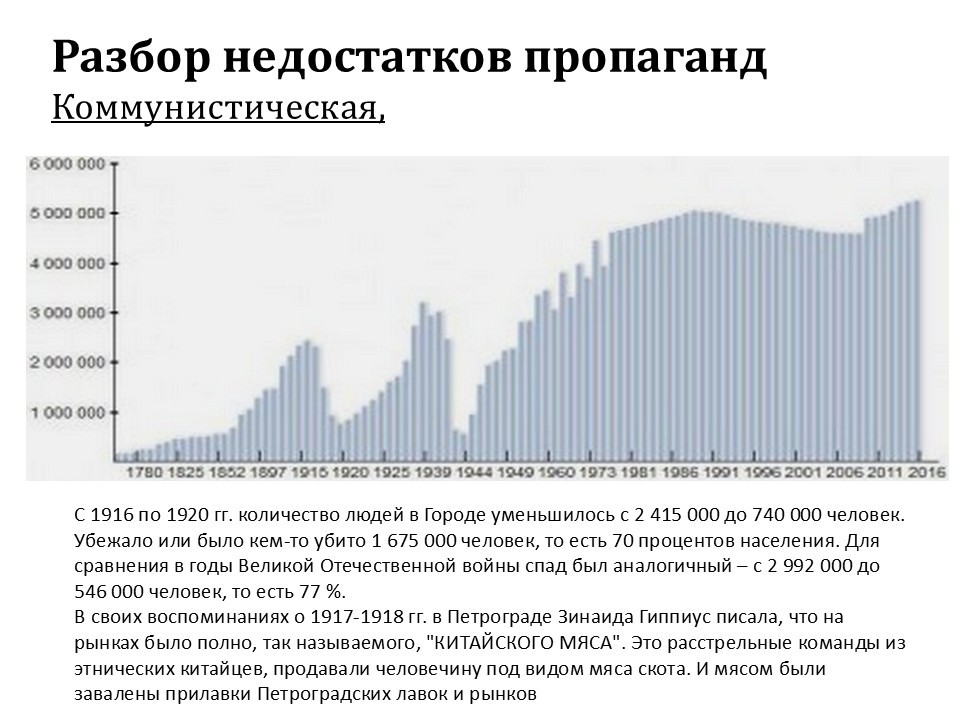 Если вы посмотрите, то с 1916 по 1920 год количество людей в городе уменьшилось с 2 миллионов 415 тысяч до 840 тысяч человек. Это статистика, от неё никуда не убежать.