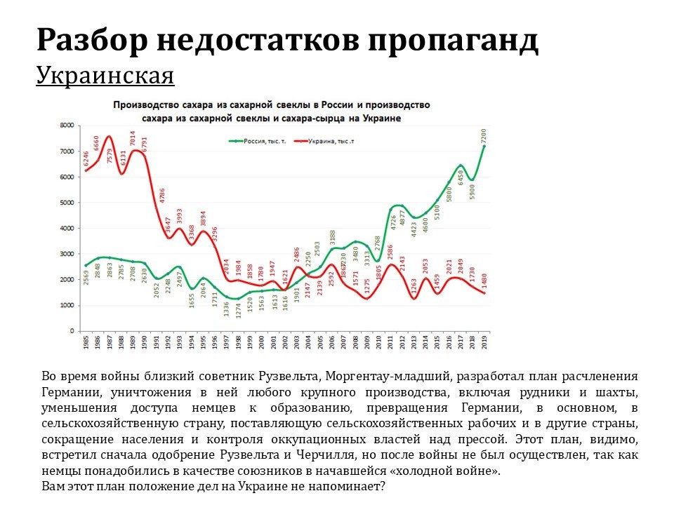 Это невозможно объяснить ничем, кроме полного развала экономики. Раньше украинцы производили сахар и сильно доминировали на рынке России, но за то время, как у них экономика развивалась, всё развалили, что смогли.