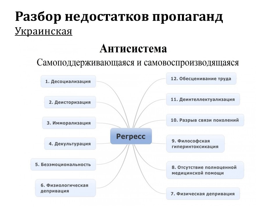 | Создан образ внешнего врага | Мировая буржуазия – экономически и управленчески грамотная элита мира. | Россия-агрессор – де-факто «страна-донор» Украины в финансовом, промышленном и военном смыслах. |