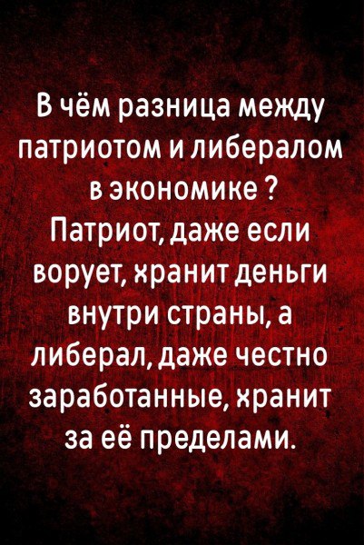 Если политик берёт взятки у своей экономики, но хранит взятки, активы, родственников в чужой (вражеской) экономике, то такой чиновник готов покинуть Родину, и ещё до этого момента легко может быть склонён к измене Родине как в политическом, так и в экономическом смысле.
